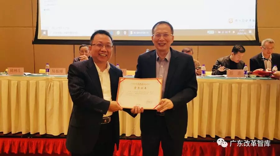 廣東省體制改革研究會(huì)名譽(yù)會(huì)長(zhǎng)、省人大原副主任陳堅(jiān),名譽(yù)會(huì)長(zhǎng)、原廣東省體改委主任易振球出席第八屆會(huì)員代表大會(huì),為第八屆理事會(huì)選舉的會(huì)長(zhǎng)、執(zhí)行會(huì)長(zhǎng)、副會(huì)長(zhǎng)、秘書長(zhǎng)、監(jiān)事頒發(fā)證書。周林生會(huì)長(zhǎng)為高級(jí)顧問(wèn)頒發(fā)了聘書。