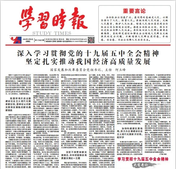 黨的十九屆五中全會(huì)審議通過了《中共中央關(guān)于制定國民經(jīng)濟(jì)和社會(huì)發(fā)展第十四個(gè)五年規(guī)劃和二〇三五年遠(yuǎn)景目標(biāo)的建議》,全面擘畫了我國發(fā)展新征程的宏偉藍(lán)圖,是指引我們實(shí)現(xiàn)第一個(gè)百年奮斗目標(biāo)之后向第二個(gè)百年奮斗目標(biāo)進(jìn)軍的行動(dòng)指南,我們要自覺把思想和行動(dòng)統(tǒng)一到以習(xí)近平同志為核心的黨中央重大決策部署上來,深入學(xué)習(xí)領(lǐng)會(huì)、全面貫徹落實(shí)。