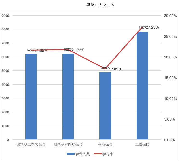 社保覆蓋方面,也是農(nóng)民工最差,這進一步制約了農(nóng)民工及其家庭的消費意愿。2017年農(nóng)民工參加社會保險的比例,最高的工傷保險不到30%,參加職工基本養(yǎng)老保險和基本醫(yī)療保險的約21%,參加失業(yè)保險的只有17%。