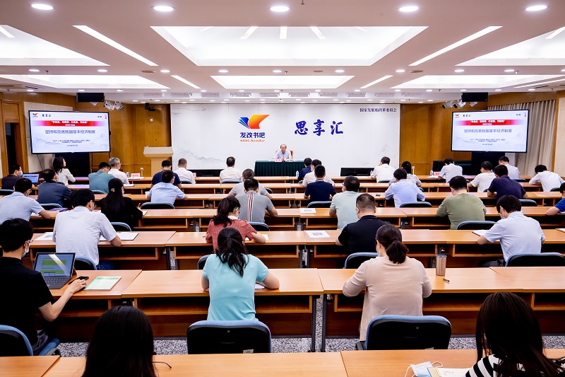 7月13日,國(guó)家發(fā)改委請(qǐng)我會(huì)會(huì)長(zhǎng)彭森在委“發(fā)改書(shū)吧思享匯”“學(xué)黨史、悟思想、辦實(shí)事、開(kāi)新局”系列第6期學(xué)習(xí)交流活動(dòng)上,圍繞“堅(jiān)持和完善我國(guó)基本經(jīng)濟(jì)制度”主題作專題講座,國(guó)家發(fā)改委黨組成員、秘書(shū)長(zhǎng)趙辰昕等有關(guān)領(lǐng)導(dǎo)同志出席聽(tīng)講。