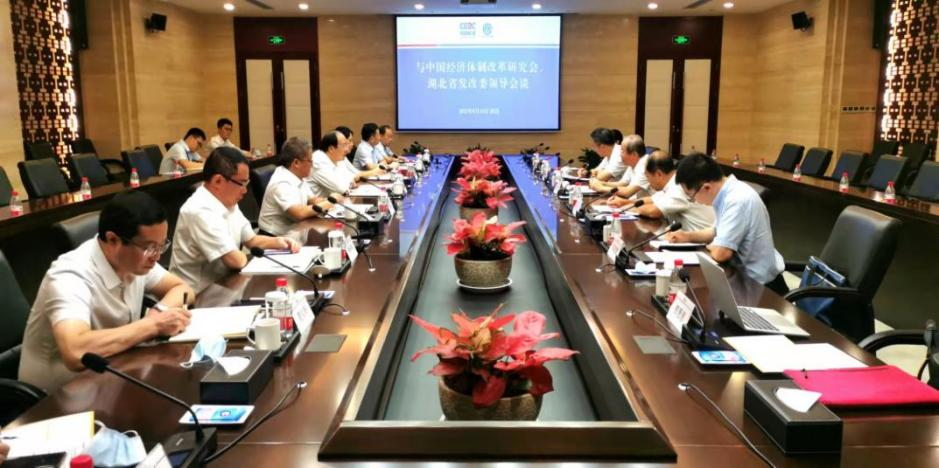 調(diào)研期間,彭森會長一行在湖北省發(fā)改委組織召開專題座談會。省發(fā)改委、經(jīng)信廳、財政廳、生態(tài)環(huán)境廳、國資委、市場監(jiān)管局、武漢市發(fā)改委以及省文化旅游投資集團(tuán)有限公司,武漢商貿(mào)國有控股集團(tuán)有限公司等單位負(fù)責(zé)同志參加座談會并介紹相關(guān)情況。