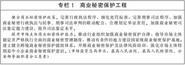 健全知識(shí)產(chǎn)權(quán)法律法規(guī)。開展知識(shí)產(chǎn)權(quán)基礎(chǔ)性法律研究。統(tǒng)籌推進(jìn)專利法、商標(biāo)法、著作權(quán)法、反壟斷法、科學(xué)技術(shù)進(jìn)步法、電子商務(wù)法等相關(guān)法律法規(guī)的修改完善。加強(qiáng)地理標(biāo)志、商業(yè)秘密等領(lǐng)域立法,出臺(tái)商業(yè)秘密保護(hù)規(guī)定。完善集成電路布圖設(shè)計(jì)法規(guī)。推進(jìn)修訂植物新品種保護(hù)條例。制定中醫(yī)藥傳統(tǒng)知識(shí)保護(hù)條例。完善與國防建設(shè)相銜接的知識(shí)產(chǎn)權(quán)法律制度。全面建立并實(shí)施知識(shí)產(chǎn)權(quán)侵權(quán)懲罰性賠償制度,加大損害賠償力度。研究建立健全符合知識(shí)產(chǎn)權(quán)審判規(guī)律的特別程序法律制度。適應(yīng)科技進(jìn)步和經(jīng)濟(jì)社會(huì)發(fā)展需要,依法及時(shí)推動(dòng)知識(shí)產(chǎn)權(quán)法律法規(guī)立改廢釋。(中央宣傳部、最高人民法院、最高人民檢察院、科技部、工業(yè)和信息化部、司法部、農(nóng)業(yè)農(nóng)村部、商務(wù)部、國家衛(wèi)生健康委、市場監(jiān)管總局、國家國防科工局、國家林草局、國家中醫(yī)藥局、國家知識(shí)產(chǎn)權(quán)局、中央軍委裝備發(fā)展部等按職責(zé)分工負(fù)責(zé))