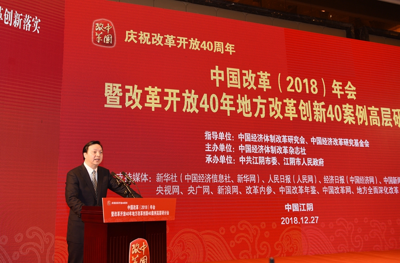 江陰是“中國制造業(yè)第一縣”,是一座用拼搏進(jìn)取的歷程,見證改革開放40年偉大成就,書寫下地方改革創(chuàng)新傳奇,被稱為改革開放經(jīng)濟(jì)社會(huì)發(fā)展生動(dòng)縮影的城市。四十年來,江陰堅(jiān)持改革開放立市,一直把改革創(chuàng)新當(dāng)作快速發(fā)展的根本動(dòng)力,由此成為全國全面小康十大示范縣之一,高居工業(yè)百強(qiáng)縣之首。因此,作為年度改革盛會(huì),同時(shí)也作為我社改革開放40年系列活動(dòng)的總結(jié)會(huì)議,中國改革2018年會(huì)地點(diǎn)放在江陰,對(duì)于更加準(zhǔn)確、現(xiàn)實(shí)、深入理解和傳承改革開放的偉大意義和精神,具有重要意義。