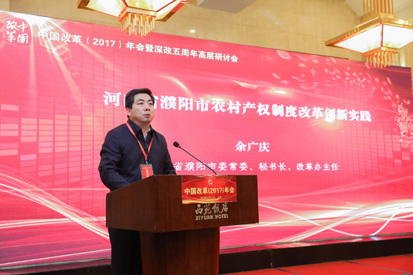 河南省濮陽市委常委、秘書長、改革辦主任余廣慶介紹了濮陽特色鮮明的農(nóng)村集體產(chǎn)權(quán)制度改革經(jīng)驗:在推進(jìn)農(nóng)村集體產(chǎn)權(quán)制度改革中,濮陽市農(nóng)村黨支部成為基層黨建工作的一個重大創(chuàng)新,市委領(lǐng)導(dǎo)親自上陣親自督辦、跟蹤進(jìn)度;建成了比較完善的市縣鄉(xiāng)三級產(chǎn)權(quán)交易平臺,充分釋放農(nóng)村要素活力;依托市縣兩級黨校邀請專家解讀改革政策改革事件推動農(nóng)村改革。