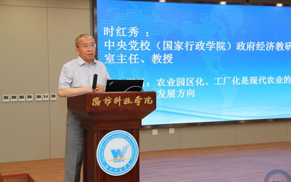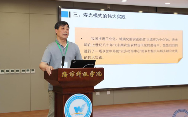 壽光市人大常委會副主任、濰坊科技學院校長李昌武在致辭中表示,濰坊市委副書記、壽光市委書記林紅玉同志在全市三級干部會議上,對我校提出全面提升辦學水平,提高社會服務能力,加快推進碩士點培育建設的要求。為落實林書記講話要求,加強區(qū)域經(jīng)濟和“壽光模式”研究,壽光市人民政府與中國經(jīng)濟體制改革研究會等聯(lián)合成立的“新時代鄉(xiāng)村振興與區(qū)域經(jīng)濟發(fā)展研究院”掛靠學院,引進了大批高層次人才,形成了一批富有創(chuàng)造性、建設性的學術研究成果和決策咨詢意見,“壽光模式”研究成果在國家發(fā)改委《改革內(nèi)參》刊發(fā)。成立了國家二級學會農(nóng)學思想與《齊民要術》研究會,連續(xù)成功舉辦了10屆中華農(nóng)圣文化國際研討會,師生原創(chuàng)52集動畫片《農(nóng)圣賈思勰》在中央電視臺和山東衛(wèi)視播出。學校組建了博士、教授農(nóng)學科研服務團隊,成立了蔬菜產(chǎn)業(yè)學院、農(nóng)業(yè)技術培訓基地,自主研發(fā)蔬菜品種28個,在全國7個省區(qū)建立了育種基地,開發(fā)運營了壽光市農(nóng)業(yè)智慧監(jiān)管服務公共平臺,打造了覆蓋設施農(nóng)業(yè)全產(chǎn)業(yè)鏈的專業(yè)服務體系,為創(chuàng)新提升“壽光模式”和鄉(xiāng)村振興戰(zhàn)略的實施提供了有力支撐。