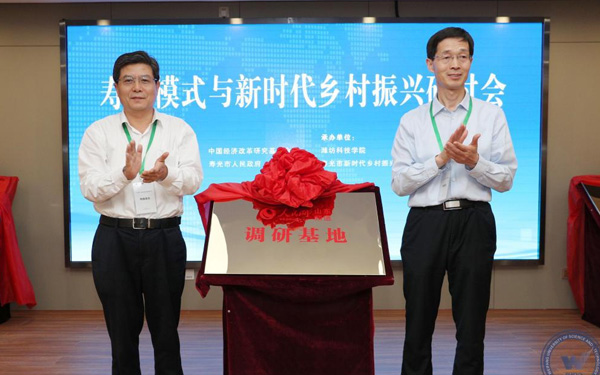 5月25日-26日,由中國經(jīng)濟體制改革研究會、中國經(jīng)濟改革研究基金會、壽光市委市政府聯(lián)合主辦的“壽光模式與新時代鄉(xiāng)村振興”研討會在壽光市農(nóng)圣文化學術交流中心舉行。與會專家聽取了“壽光模式”研究課題組成果匯報,開展了熱烈研討,并到三元朱村、菜博會、全國蔬菜質(zhì)量標準中心等地進行了實地調(diào)研。新時代鄉(xiāng)村振興與區(qū)域經(jīng)濟發(fā)展研究院、中國經(jīng)濟體制改革研究會博士后科研工作站壽光分站、人民網(wǎng)山東頻道調(diào)研基地”同期揭牌。