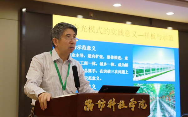 新時代鄉(xiāng)村振興與區(qū)域經(jīng)濟發(fā)展研究院執(zhí)行院長、經(jīng)濟管理學部主任、教授、博士生導師張友祥代表“壽光模式”研究課題組從“壽光模式”的內(nèi)涵和特征、形成機制、實踐價值等方面作了研究成果匯報。