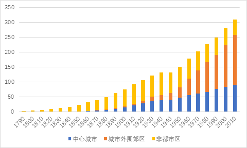 還有鄉(xiāng)村和小城鎮(zhèn),在郊區(qū)化過(guò)程中這些新形態(tài)開(kāi)始快速增長(zhǎng)。