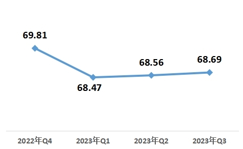 10月23日,中國經(jīng)濟(jì)體制改革研究會在京發(fā)布《2023年第三季度改革熱度第三方評估報告》。報告顯示,2023年第三季度改革熱度指數(shù)為68.69,比上一季度上升0.13,自2023年第二季度以來連續(xù)兩個季度保持上升趨勢。