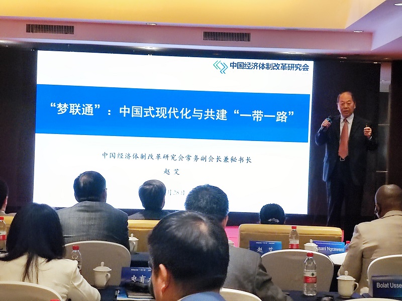 2023年10月28日,我會常務副會長兼秘書長趙艾應邀出席在北京召開的“高質量共建‘一帶一路’:成就與展望”國際學術研討會,并作題為《“夢聯(lián)通”:中國式現(xiàn)代化與共建“一帶一路”》的主旨演講。
