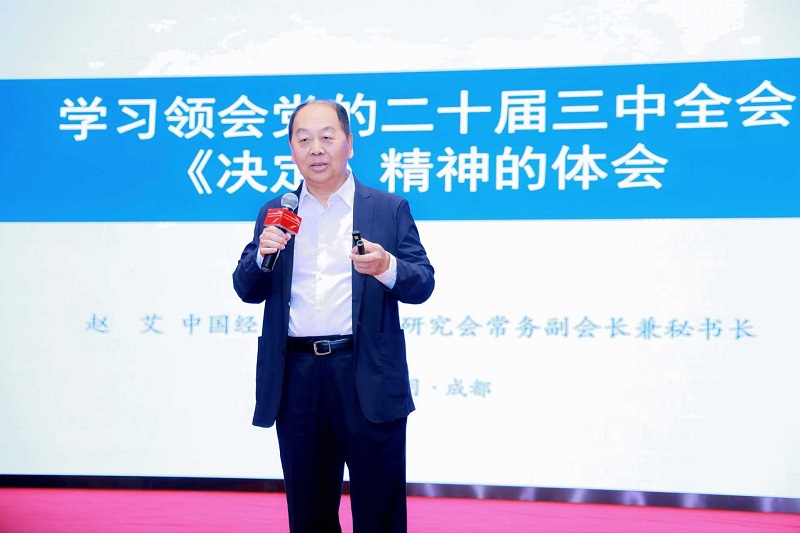 趙艾談到,黨的二十屆三中全會是在新時代新征程進一步全面深化改革開放,推進中國式現代化關鍵時期召開的一次十分重要的會議,全會審議通過了《中共中央關于進一步全面深化改革、推進中國式現代化的決定》,提出了60條300多項重點改革舉措,內容豐富、分量很重、成色十足?!稕Q定》對于繼續(xù)完善和發(fā)展中國特色社會主義制度,推進國家治理體系和治理能力現代化,到2035年全面建成高水平社會主義市場經濟體制,中國特色社會主義制度更加完善,基本實現國家治理體系和治理能力現代化,基本實現社會主義現代化,為到本世紀中葉全面建成社會主義現代化強國具有十分重要的意義。成都高新區(qū)在全面深化改革開放,以科技創(chuàng)新為引領,因地制宜發(fā)展新質生產力,激發(fā)高質量發(fā)展內生動力,推動產業(yè)結構優(yōu)化升級等方面,積累了一系列可圈可點的經驗和做法,取得了一系列的亮眼成績。希望成都高新區(qū)百尺桿頭,再接再厲,按照黨的二十屆三中全會的精神,進一步深化體制機制改革創(chuàng)新,以新質生產力發(fā)展為引擎,推動高質量發(fā)展等方面取得更優(yōu)異的成績。中國經濟體制改革研究會十分樂意與成都高新區(qū)就體制機制改革創(chuàng)新的重大問題開展合作研究。
