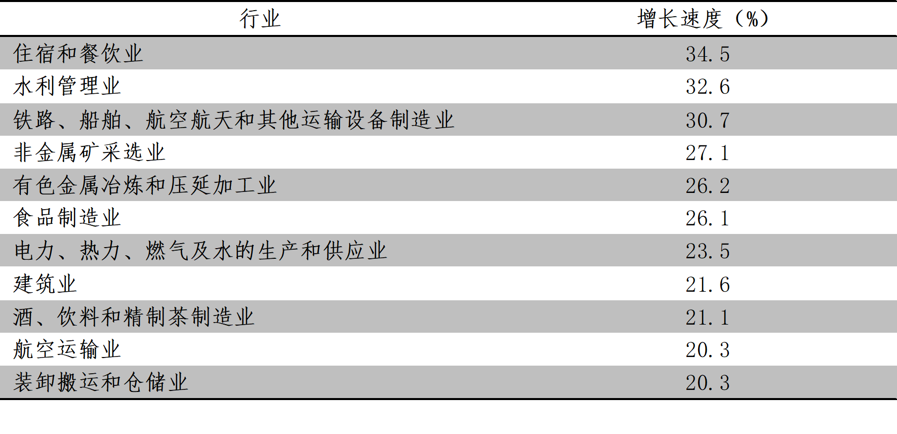 1-8月份,固定資產(chǎn)投資增速超過20%的行業(yè)共11個,即住宿和餐飲業(yè)增長34.5%,水利管理業(yè)增長32.6%,鐵路、船舶、航空航天和其他運(yùn)輸設(shè)備制造業(yè)增長30.7%,非金屬礦采選業(yè)增長27.1%,有色金屬冶煉和壓延加工業(yè)增長26.2%,食品制造業(yè)增長26.1%,電力、熱力、燃?xì)饧八纳a(chǎn)和供應(yīng)業(yè)增長23.5%,建筑業(yè)增長21.6%,酒、飲料和精制茶制造業(yè)增長21.1%,航空運(yùn)輸業(yè)增長20.3%,裝卸搬運(yùn)和倉儲業(yè)增長20.3%。
