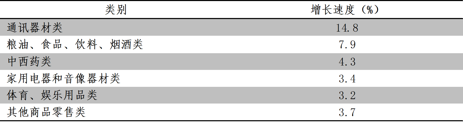 表5. 8月份限額以上單位商品零售同比增速快于2.1%的類別