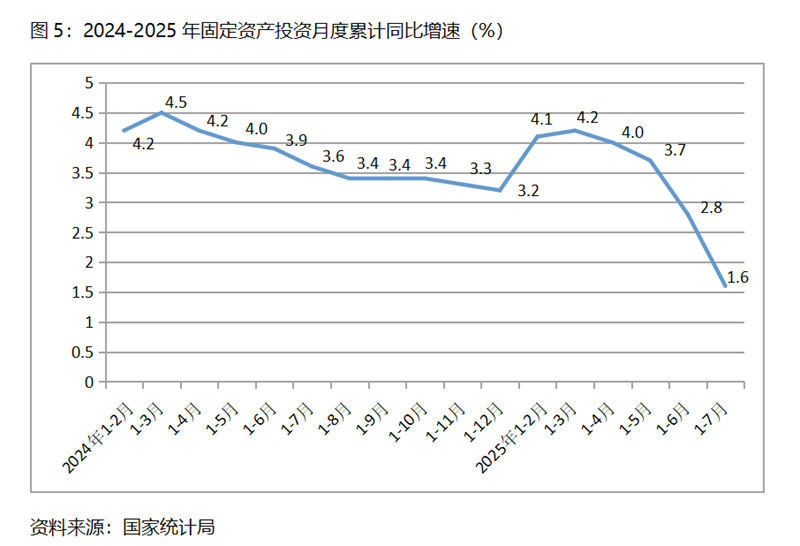 (三)投資增速持續(xù)回落。1-7月份,固定資產(chǎn)投資同比增長1.6%,比1-6月份增長2.8%回落了1.2個百分點,1-6月份增速比1-5月份增長3.7%回落了0.9個百分點,增速呈現(xiàn)出持續(xù)的回落。1-7月份國有控股投資同比增速比1-6月份回落1.5個百分點;民間投資降幅擴大了0.9個百分點。三次產(chǎn)業(yè)投資中,第一產(chǎn)業(yè)投資增速回落0.9個百分點,第二產(chǎn)業(yè)投資增速回落1.3個百分點,第三產(chǎn)業(yè)投資降幅擴大1.2 百分點。固定資產(chǎn)投資增速較大幅度的持續(xù)回落,需引起宏觀調(diào)控的高度重視。